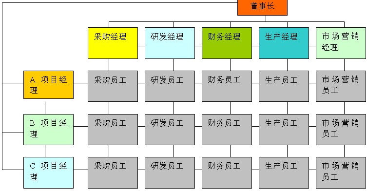 矩阵型组织结构的目标就是充分利用企业中专门技术的结合,而普通的分级结构就难以实现这一目标。矩阵制组织结构将个人或单元横向归类为小组,并由小组处理正在进行的战略事务,从而实现这一目标。这一混合型结构在保持职能型结构和M型结构的优点方面做出了尝试。矩阵结构是一种具有两个或多个命令通道的结构,包含两条预算权力线以及两个绩效和奖励来源。