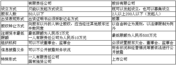 我国公司法对有限责任公司与股份有限公司的不同规定