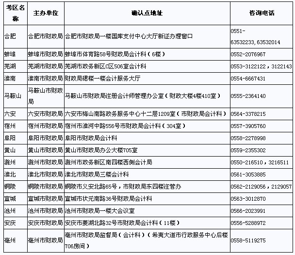 考生可登陆安徽省财政厅网站“公众服务”栏“注册会计师管理”网页(www.ahcz.gov.cn)或中国注册会计师协会网站“CPA考试网上报名”网页(http://cpaexam.cicpa.org.cn/)详细查看安徽考区报名简章。