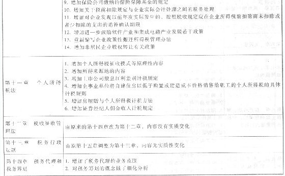2013年的注册会计师税法教材进行了又一次的以“增叶减枝”为主旋律的删改调整。适度增加了各税历史沿革和特点等涉税基础内容,有利于考生加深对各个税种性质及改革方向的认知和理解,适度增加了教材的基础性。