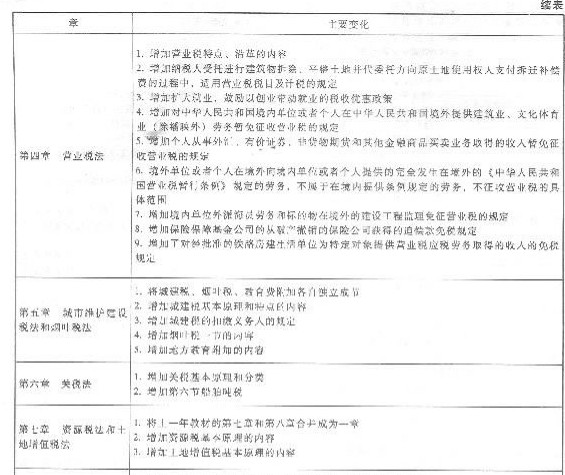 教材主要变化体现在进行章节合并和进行各章政策补充调整两个方面: