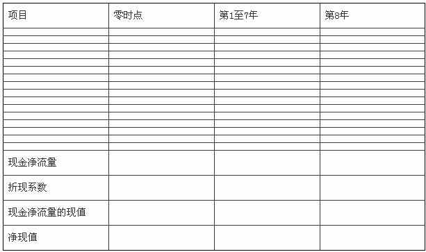 (3)计算经济型酒店项目的初始(零时点)现金流量、每年的现金净流量及项目的净现值(计算过程和结果填入下方给定的表格中),判断项目是否可行并说明原因。