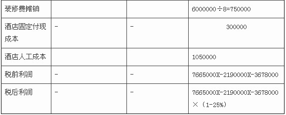 (4)租用的旧办公楼能改造成120间客房,每间客房每天的平均价格预计为175元,客房的平均入住率预计为85%。