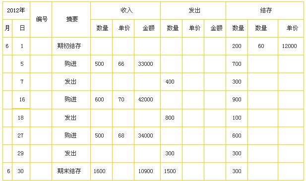 案例资料:甲公司2012年6月份A商品的购进、发出和结存资料,见下表: