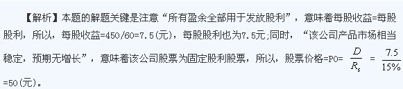 该公司产品市场相当稳定,预期无增长,所有盈余全部用于发放股利,并假定股票价格与其内在价值相等。假定不考虑筹资费。