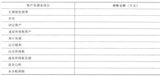 (3)填列甲公司2010年12月31日资产负债表相关项目凋整表中各项目的调整金额(调增数以“+”表示,调减数以“一”表示,不需要调整的项目填“0”)。