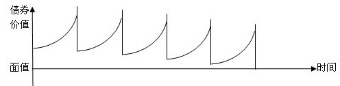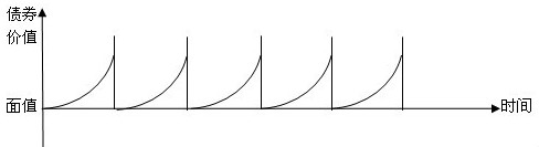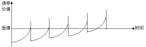 (2)平价发行的分期付息债券:整体趋势保持不变,在两个付息日之间逐渐上升。