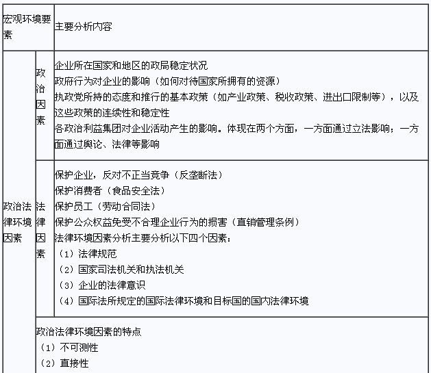 PEST模型:政治和法律环境因素、经济环境因素、社会和文化环境因素、技术环境因素。