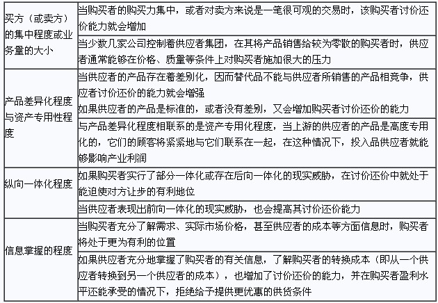 (3)供应者、购买者讨价还价的能力