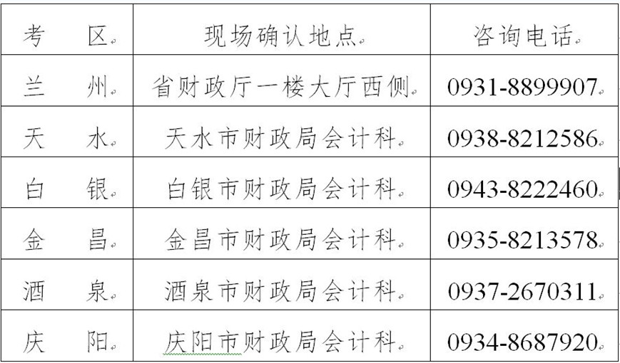 专业阶段考试地点安排在兰州、天水、白银、酒泉、金昌、庆阳考区。