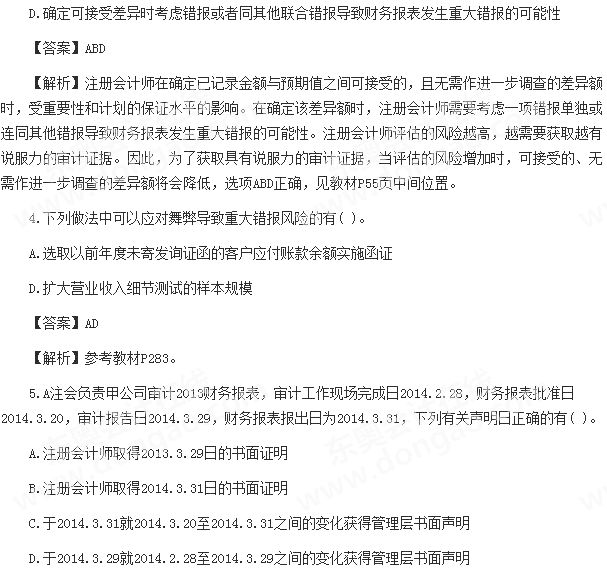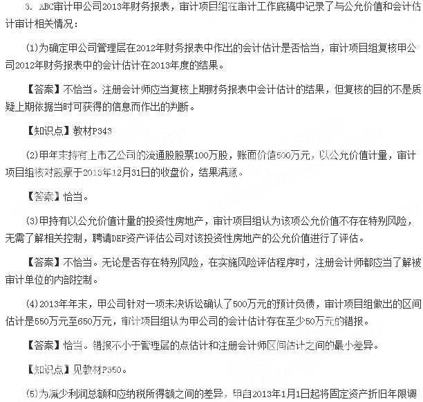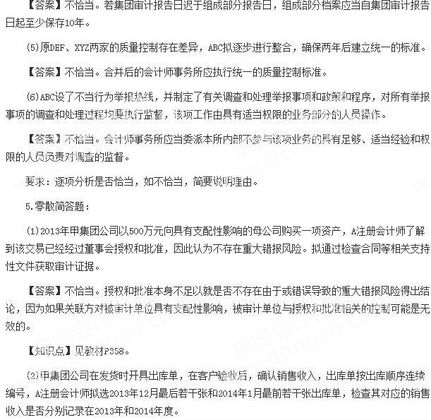 2014年注册会计师考试《审计》试题及答案(回忆版)