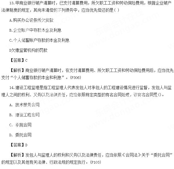 2014年注册会计师考试《经济法》试题及答案(回忆版)