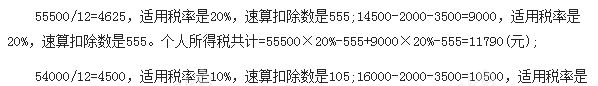25%,速算扣除数是1005;个人所得税共计=54000*10%-105+10500*25%-1005=6915(元)