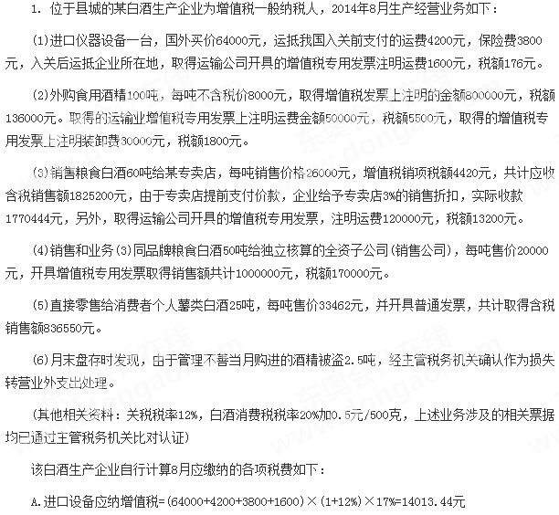 2014年注册会计师考试《税法》试题及答案(回忆版)