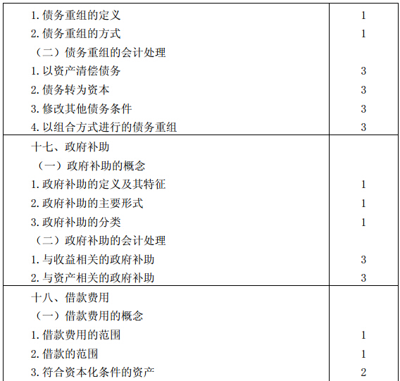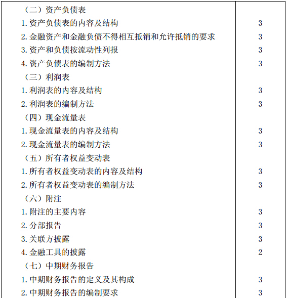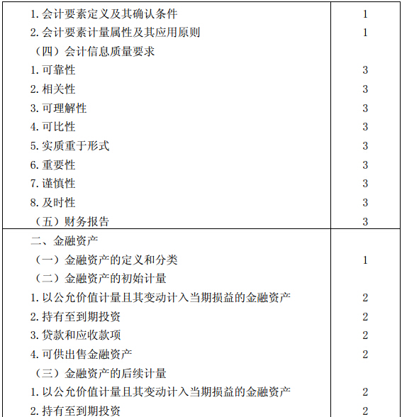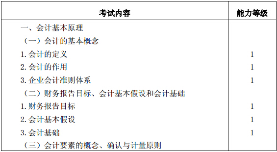 1.会计基本原理,包括会计概念、会计程序和方法、应用复式记账记录交易或事项、会计政策的选择和会计估计的运用原则、财务报告的目标和编制方法等;