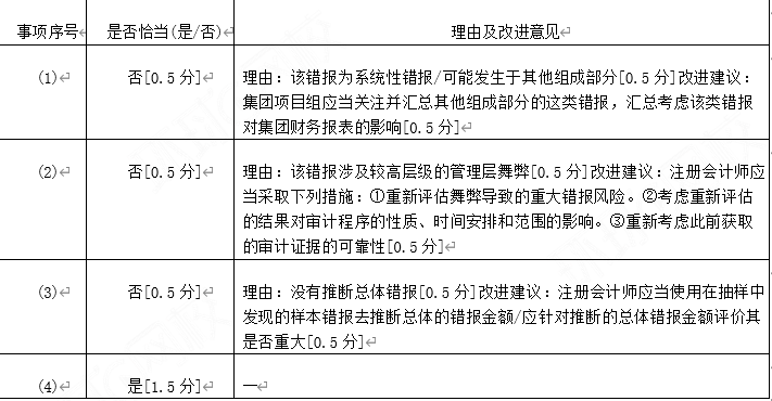 (3)针对资料四第(1)至第(4)项,假定不考虑其他条件,逐项指出A注册会计师的做法是否恰当。如不恰当,简要说明理由。将答案直接填入答题区的相应表格内。