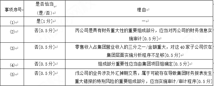 (3)甲集团公司的零售收入来自40家子公司,每家子公司的主要财务报表项目金额占集团的比例均低于1%。A注册会计师认为这些子公司均不重要,拟实施集团层面分析