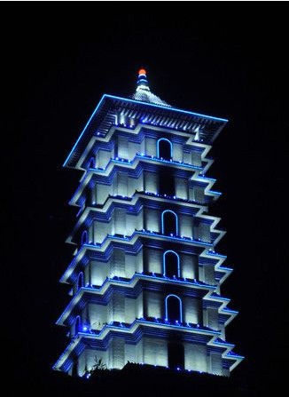 近日,江西首座青花瓷塔亮相景德镇市昌南湖畔。该瓷塔高59米,共11层,主体建筑系钢筋水泥结构,外立面镶嵌青花瓷片,于2010年底开工建设。目前,主体建筑已全部完工,成为千年瓷都景德镇新的标志性景观。3月26日晚,夜色中的景德镇青花瓷塔显得格外醒目。