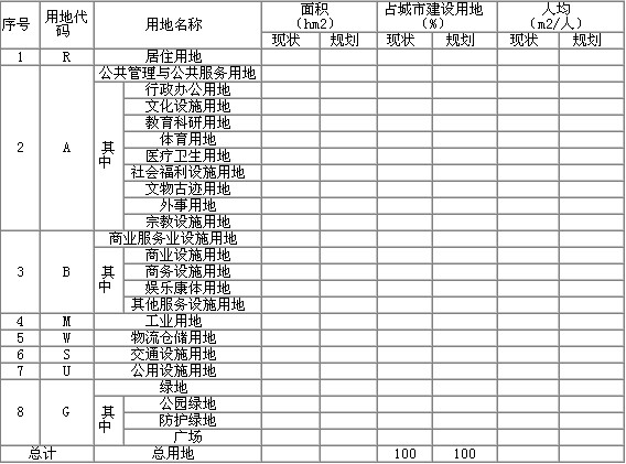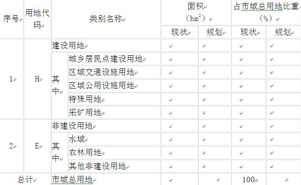 A.0.2 城市(镇)总体规划城市建设用地的数据计算应统一按表A.0.2的格式进行汇总。