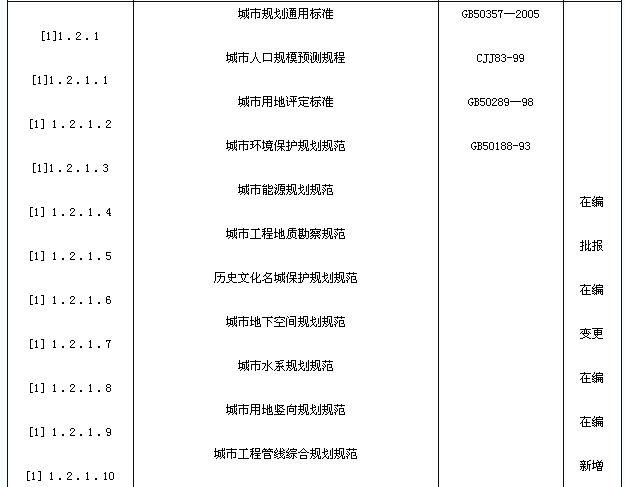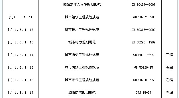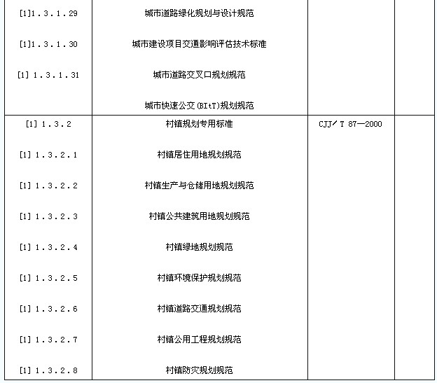 从1993年首次编制完成的《城市规划标准规范体系》,到2002年修订完善的现行《城乡规划技术标准体系》,经过十多年的实践,标准规范的执行情况基本良好,编制计划正在落实和推进。随着技术的进步和城市发展的需要,有些体系内没有列出的标准规范也被提上了日程,并且编制完成、发布实施。《城乡规划法》的颁布实施,使城乡规划的技术标准体系面临更大的调整,因此,城乡规划的技术标准体系也不是一成不变的。表2―3―表2―5中所列的是2006年调整后的城乡规划技术标准体系框架。