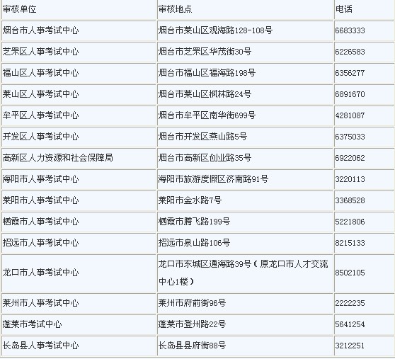 各县市区人事考试中心,市直及外地驻烟有关部门(单位):