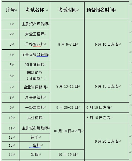 2014年下半年国家资格、执(职)业资格考试报名预备通知
