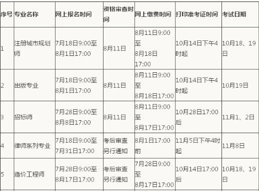 2014年8月份专业技术人员执业资格考试报名审核计划表