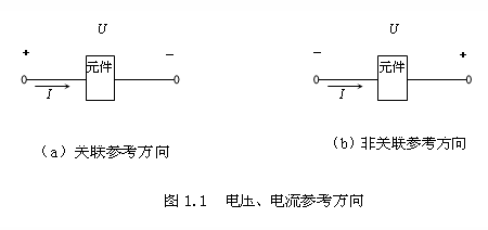(3)如下图所示,一个电路元件是负载时,就把这个元件两端的电压与通过这个元件上的电流的参考方向一致时,称为关联参考方向;反之,称为非关联参考方向。