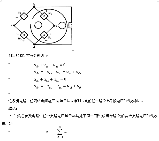 KVL可以从由支路组成的回路,推广到任一闭合的结点序列,即在任一时刻,沿任一闭合结点序列的各段电压(不一定是支路电压)的代数和等于零。