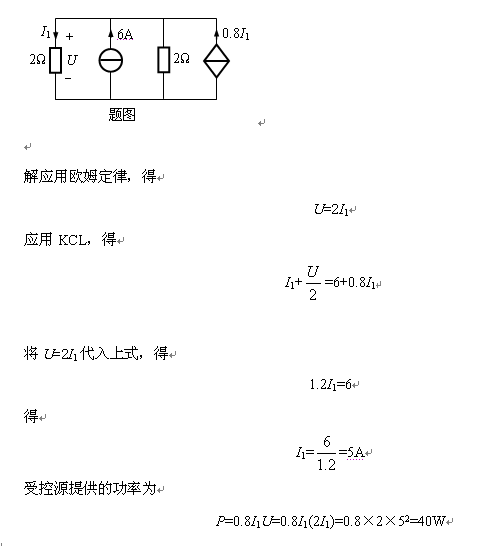 例1-3求图所示电路中受控源提供的功率。