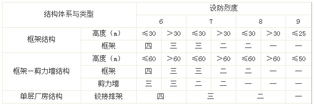 注:1 丙类建筑应按本地区的设防烈度直接由本表确定抗震等级;其他设防类别的建筑,应按现行国家标准《建筑抗震设计规范》(GB50011)的规定调整设防烈度后,再按本表确定抗震等级。
