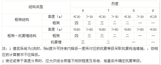 6.1.2 钢筋混凝土房屋应根据烈度、结构类型和房屋高度采用不同的抗震等级,并应符合相应的计算和构造措施要求。丙类建筑的抗震等级应按表6.1.2确定。