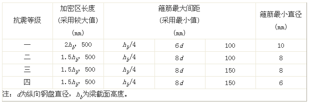 3 梁端箍筋加密区的长度、箍筋最大间距和最小直径应按表6.3.3采用,当梁端纵向受拉钢筋配筋率大于2%时?,表中箍筋最小直径数值应增大2mm。