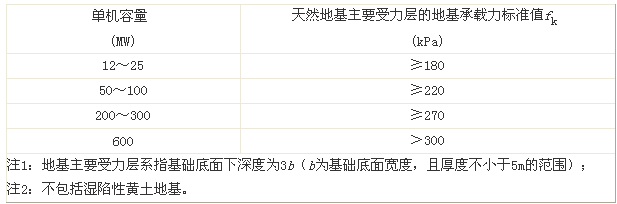 (1) 主厂房地基均匀,当地基承载力标准值满足表4.2.1时。