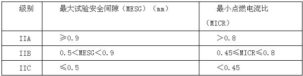 第2.4.1 最大试验安全间隙(MESG)或最小点燃电流(MIC)分级