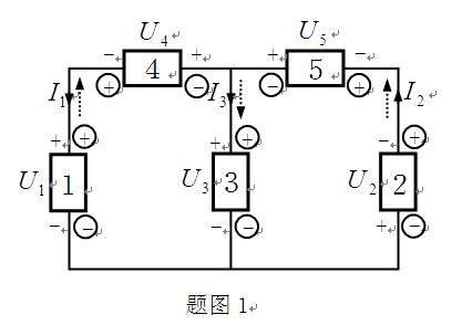 1. 题图所示电路中,5个元件代表电源或负载。通过实验测量得知:I1=-2A,I 2=3A,I 3=5A,U1=70V,U2=-45V,U3=30V,U4=-40V,U 5=-15V。判断那些元件是电源;那些元件是负载?