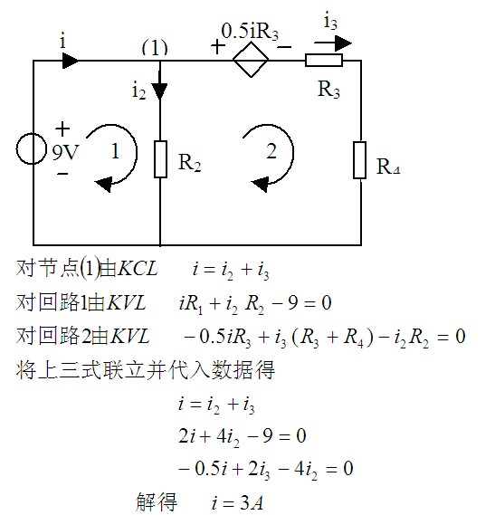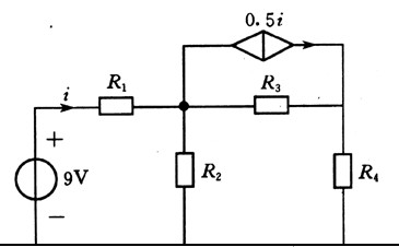 2. 对图所示电路,已知R1=2Ω,R2=4Ω,R3=R4=1Ω,求电流i。