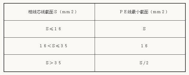 表 PE线最小截面