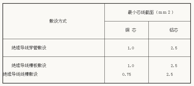 表 固定敷设的导线最小芯线截面