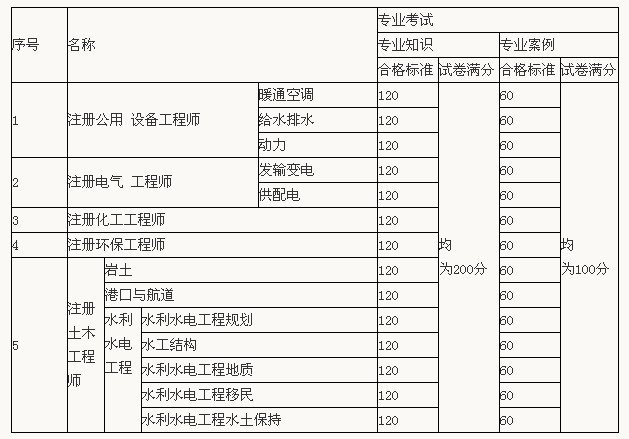 (二)注册工程师(除一级、二级注册结构工程师)资格的专业考试合格标准见下表: