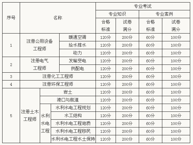 (二)注册工程师(除一级、二级注册结构工程师)资格的专业考试合格标准见下表: