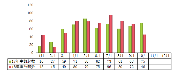 图5 2018年1-10月较大及以上事故起数与2017年同期对比
