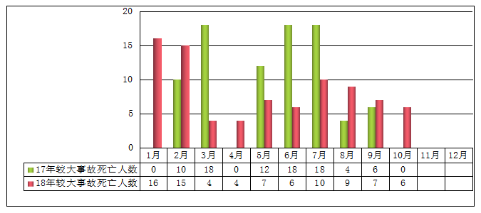 图3 2018年1-10月事故死亡人数与2017年同期对比