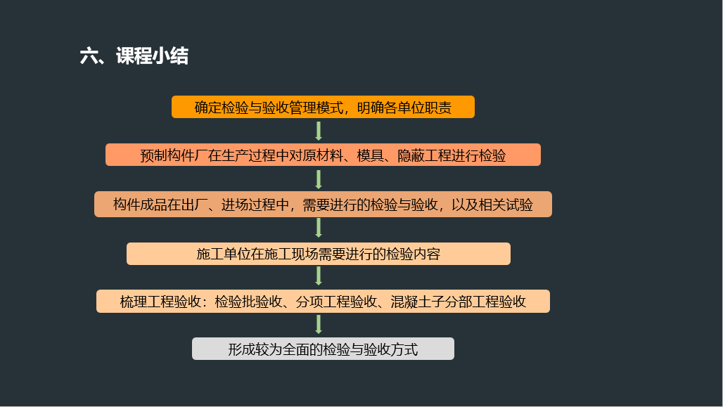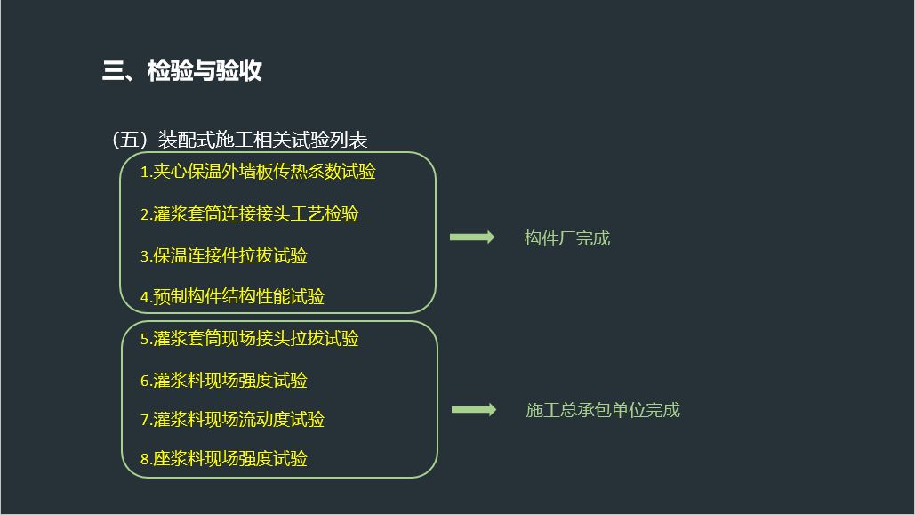从预制构件的生产环节到工程竣工,确保各个流程质量和进度有序推进依赖于完备、严格的检验与验收措施。检验及验收过程中,应注意存根留据。