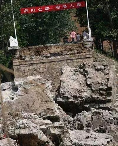 2010年7月24日,由于暴雨引发洪水,河南省洛阳市栾川县汤营大桥整体垮塌。