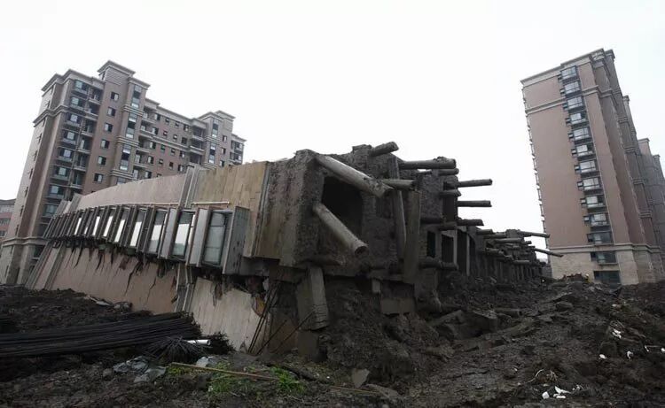2009年6月27日清晨5时30分左右上海楼盘倒塌事故,上海闵行区莲花南路、罗阳路口西侧"莲花河畔景苑"小区, 一栋在建的13层住宅楼全部倒塌,造成一名工人死亡。