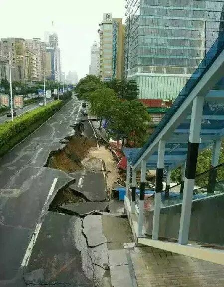 2015年7月26日凌晨,佛山CBD地段季华五路万科广场工地一侧辅道突然发生大面积塌陷,附近两辆行驶中的公交车急刹掉头。事故初步调查原因可能是工地南侧基坑防护坍塌所致,事发前夜里佛山下过暴雨。