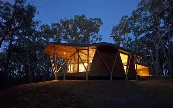 Trunk House采用生态形式,从森林中获取灵感。作为维多利亚中央高地的一个小木屋,其设计包括生活区,厨房和卧室,周围环绕着木结构。