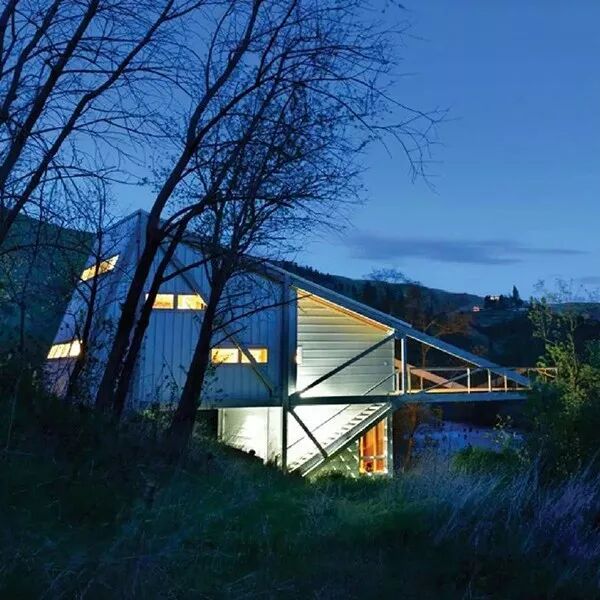 Paul Hirzel的河流结构位于一条现有的单车道未铺砌道路的尽头,该道路切入Juliaetta附近的山坡。作为酒厂和葡萄园之间的生活工作空间,该项目包括两个特定环境的结构,称为洪泛平原和渔村。