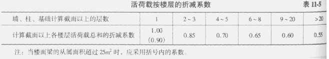 (2)设计墙、柱和基础时的折减系数